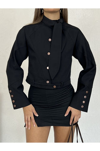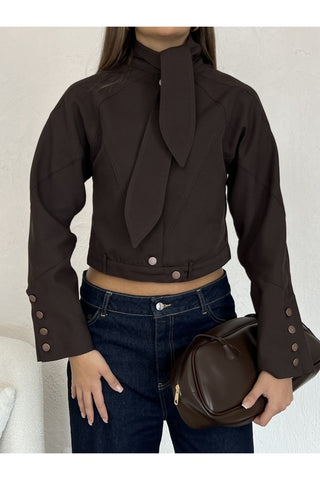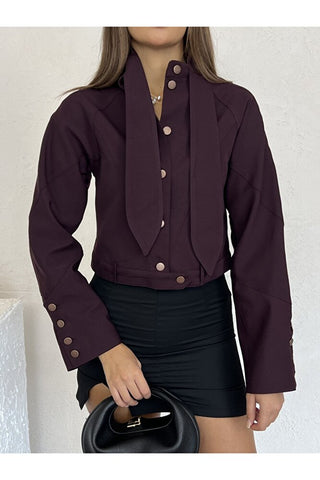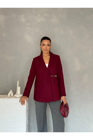 Yandan Kemer Detaylı Astarlı Kısa Kaşe Leya Ceket