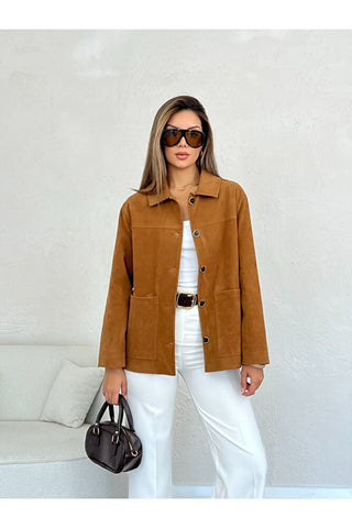 Kadife Düğmeli Kadın Günlük Astarlı Ceket Gömlek