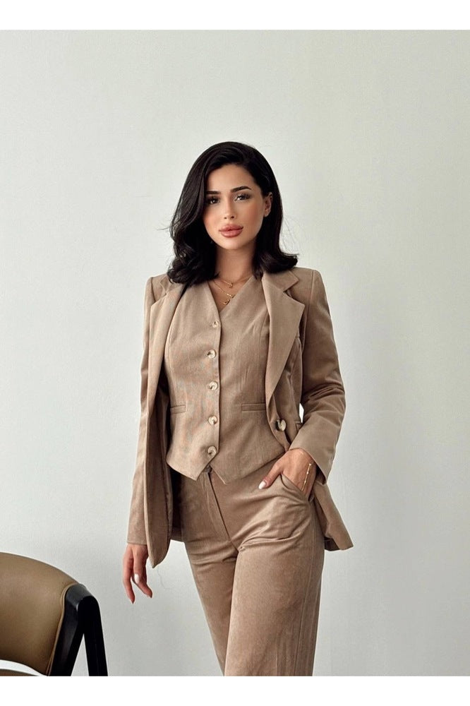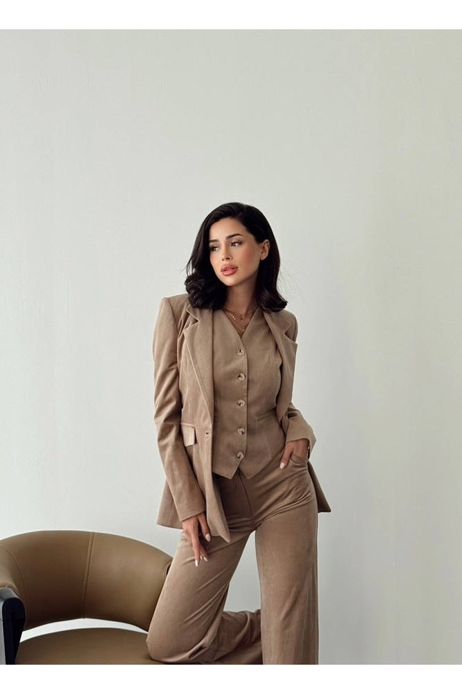 Fitilli Kadife Astarlı Kadın Blazer Ceket