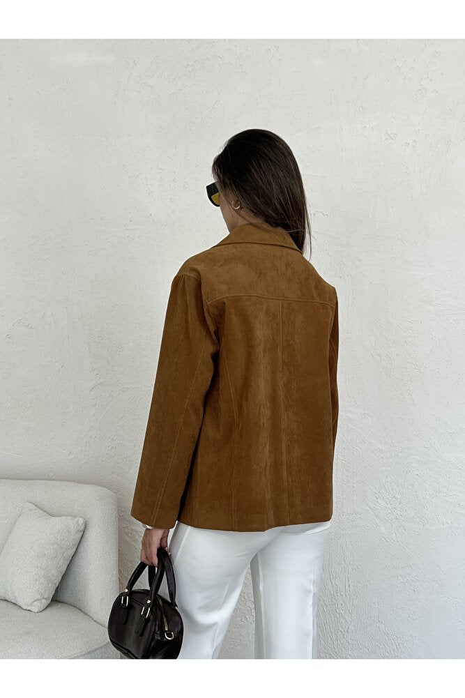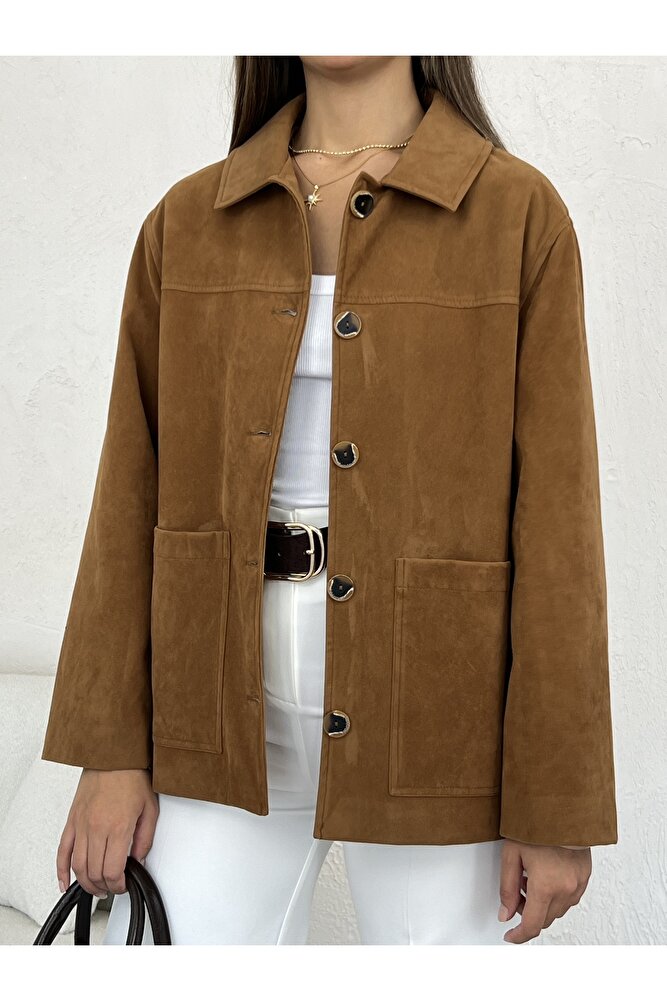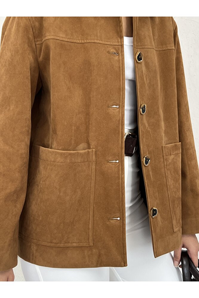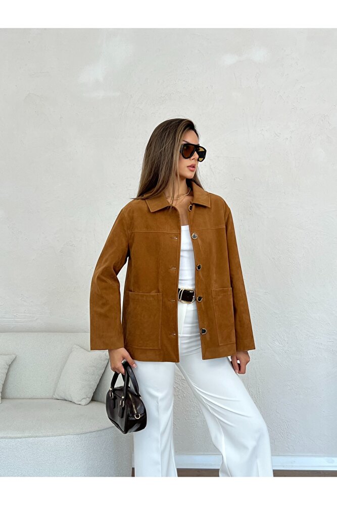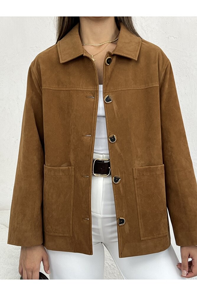 Kadife Düğmeli Kadın Günlük Astarlı Ceket Gömlek