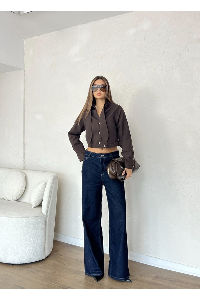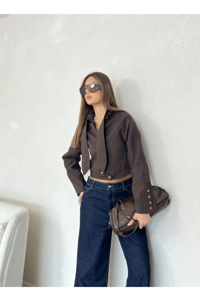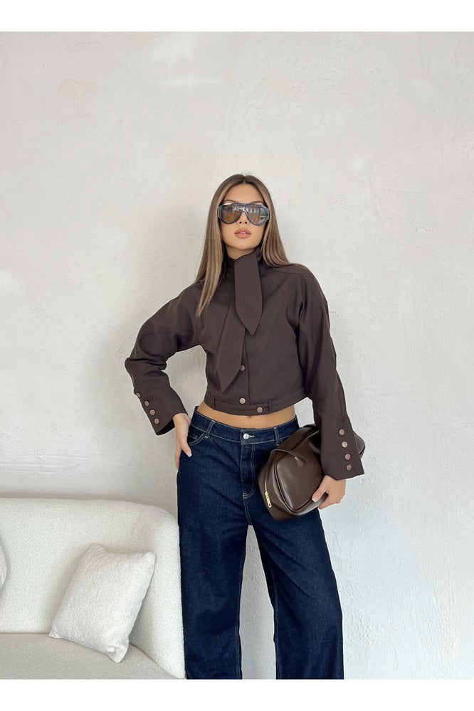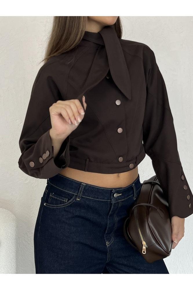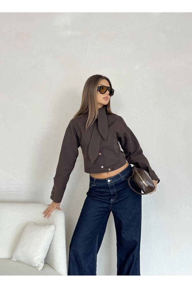Yaka Detaylı Astarlı Kısa Ceket
