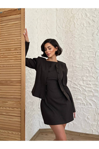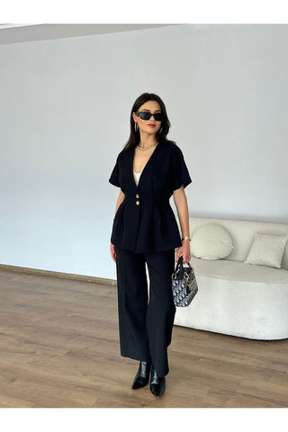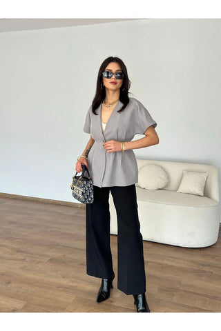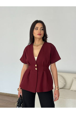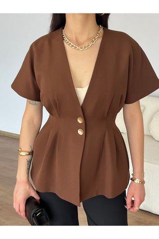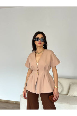 Belden Oturtmalı Kısa Kol Düğmeli Kadın Ceket