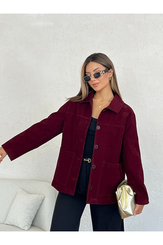 Kadife Düğmeli Kadın Günlük Astarlı Ceket Gömlek