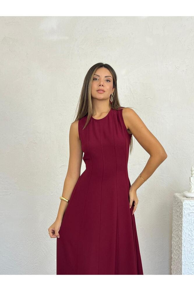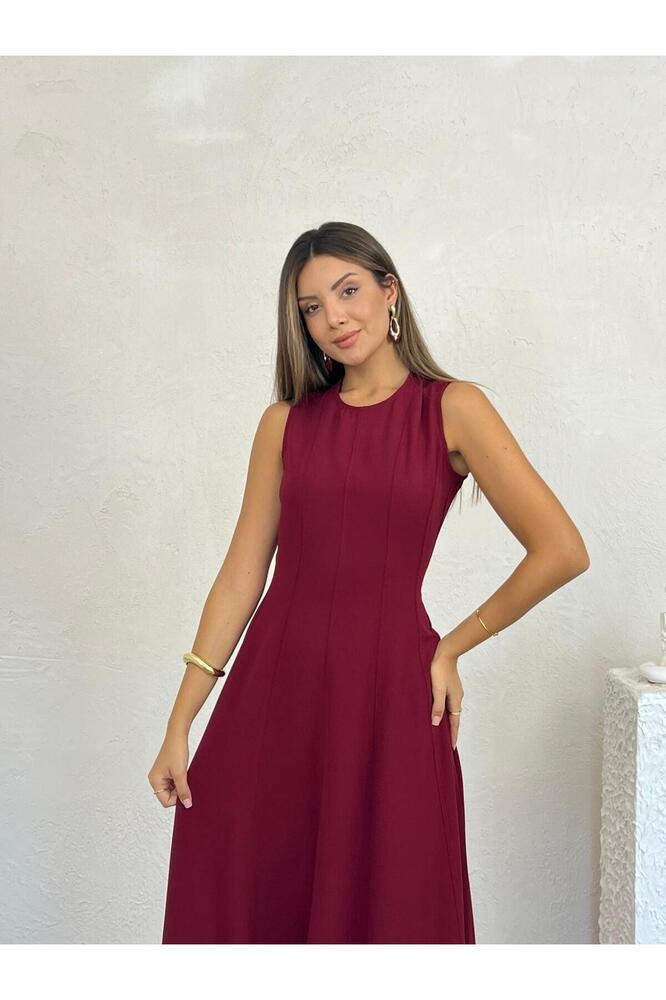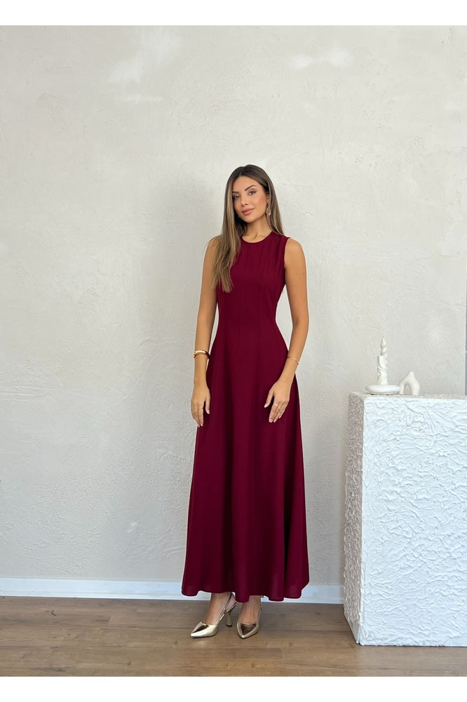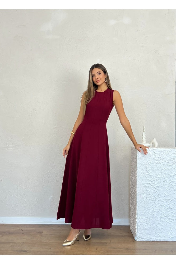 Biyeli Uzun Belden Aşağı Çan İnen Kolsuz Şık Günlük Kadın Elbise