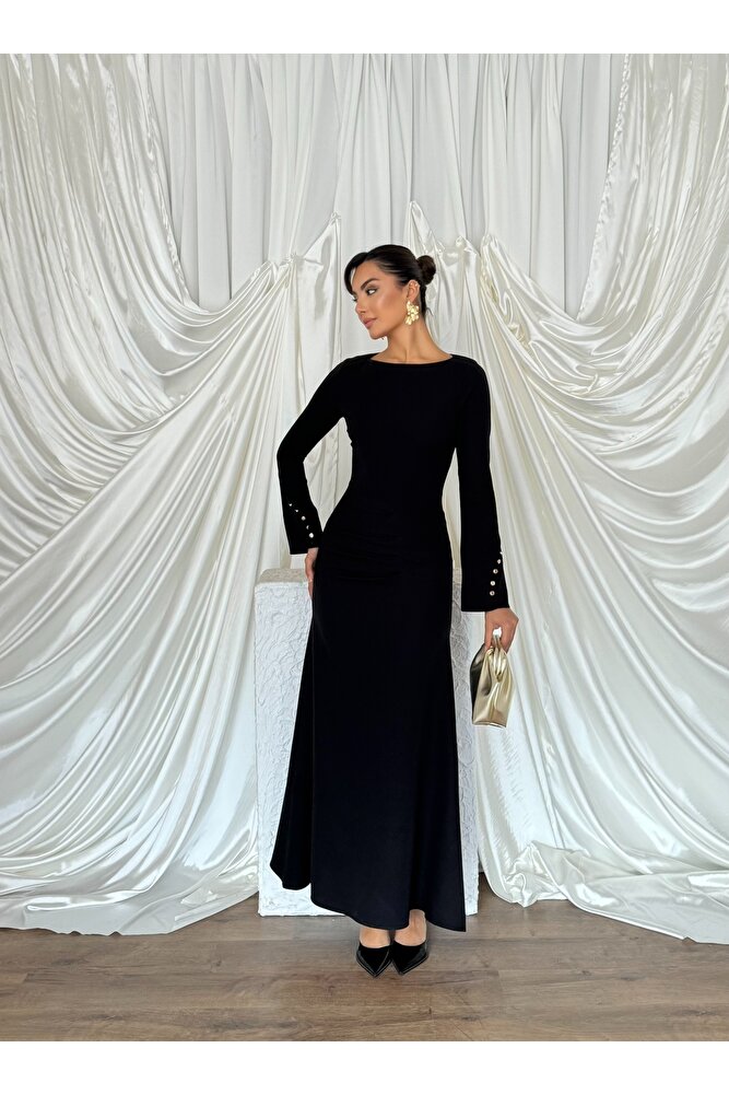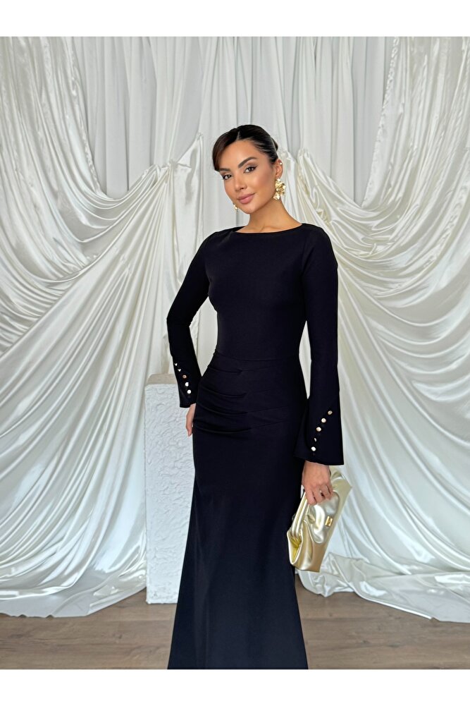 Kol Düğme Detaylı Çan İnen Beli Oturan Uzun Boy Günlük Özel Gün Marbella Kadın Elbise