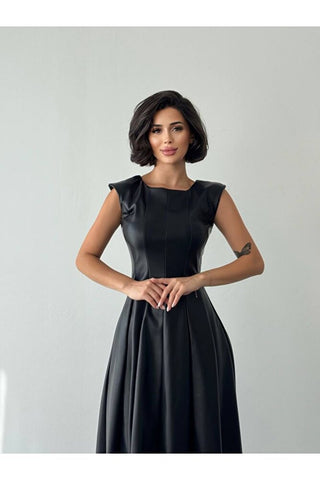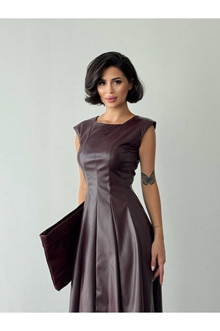 Deri Midi Boy Kolsuz Özel Gün Günlük Kadın Elbise