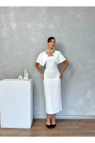Pelerinli Straplez Uzun Boy Gece Şık Özel Gün Kadın Regina Elbise
