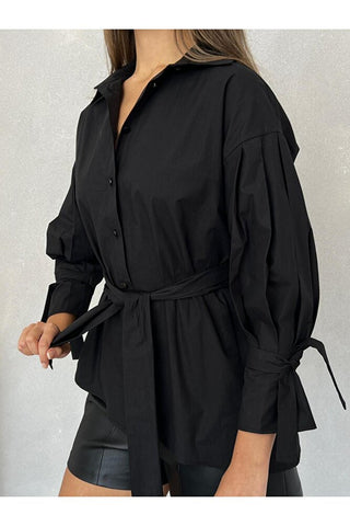 Kuşaklı Kolu Bağlamalı Şık Özel Gün Günlük Kadın Gömlek