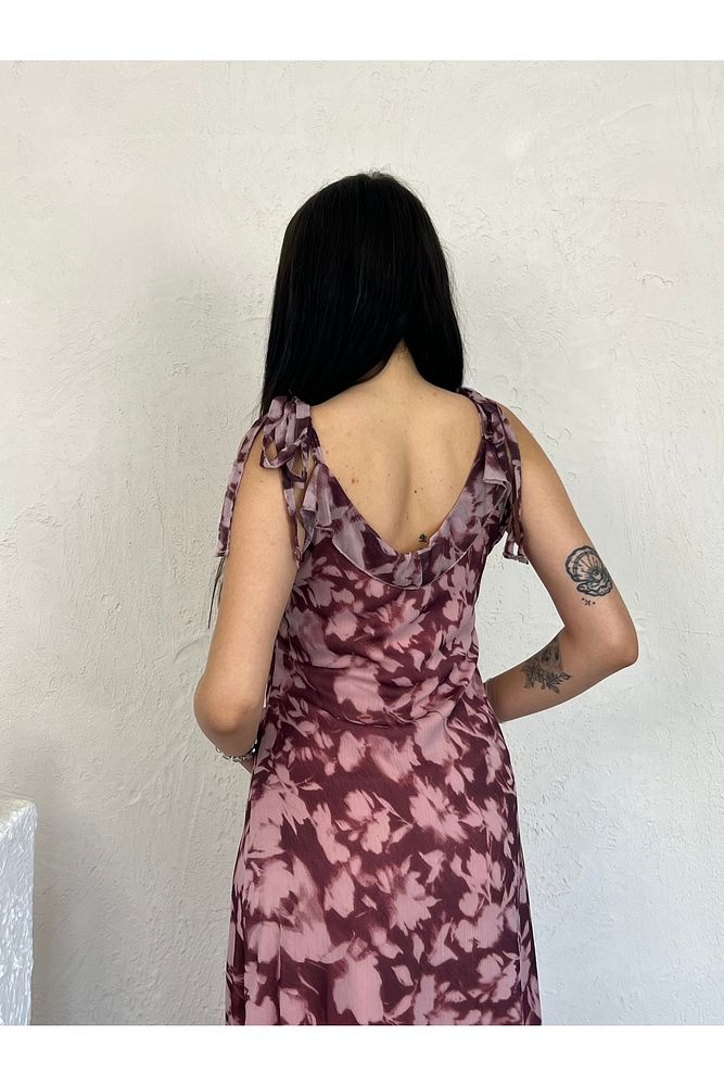 Elbise kumaşı esnek değildir.; ; Astarlıdır iç göstermez.; ; Kol ipleri ile kendinize göre bağlama yapabilirsiniz.; ; Ara bedenseniz bir beden büyük bedeni tercih etmelisiniz.; ; Manken boyu 168 kilo 53 S beden giyiilmiştir.