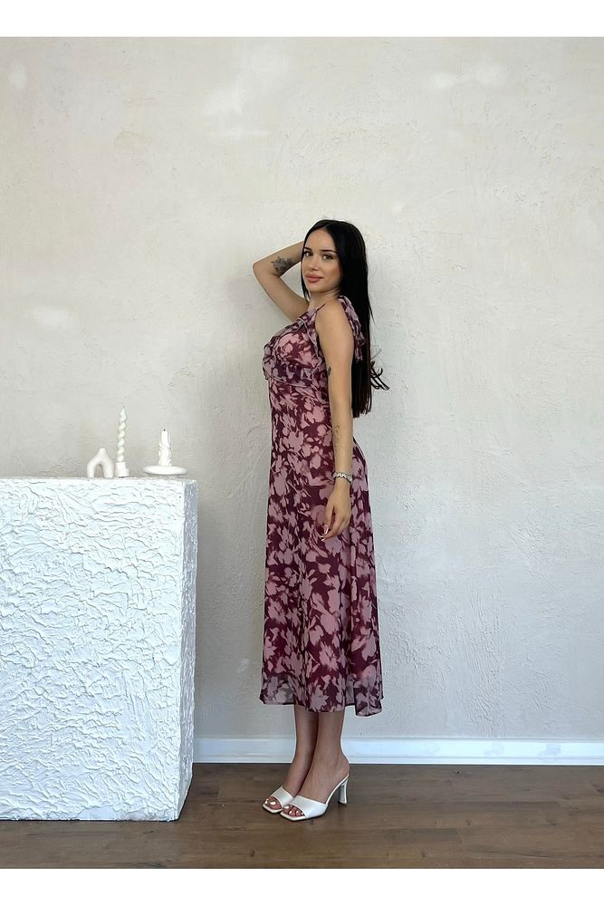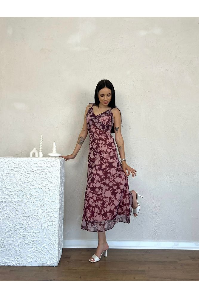 Desenli Askılı Uzun Boy Renkli Kadın Elbise