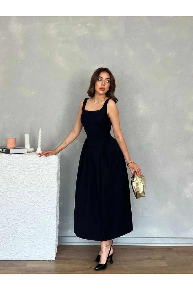 Kare Yaka Uzun Boy Günlük Özel Gün Kadın Elbise