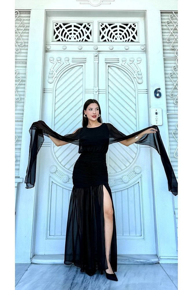Pelerinli Eteği Şifon Astarlı Özel Gün Mezuniyet Düğün Kına Nişan Kadın Elbise