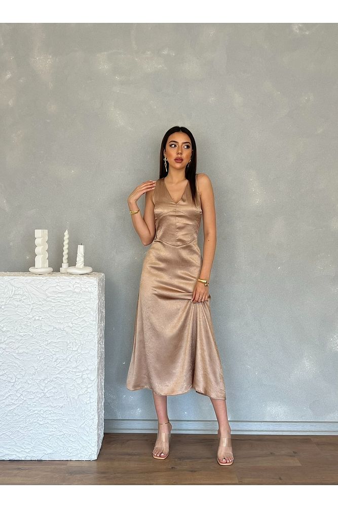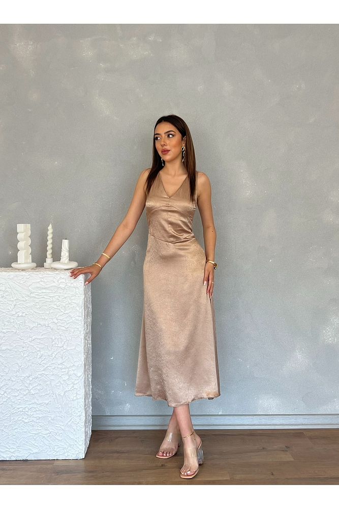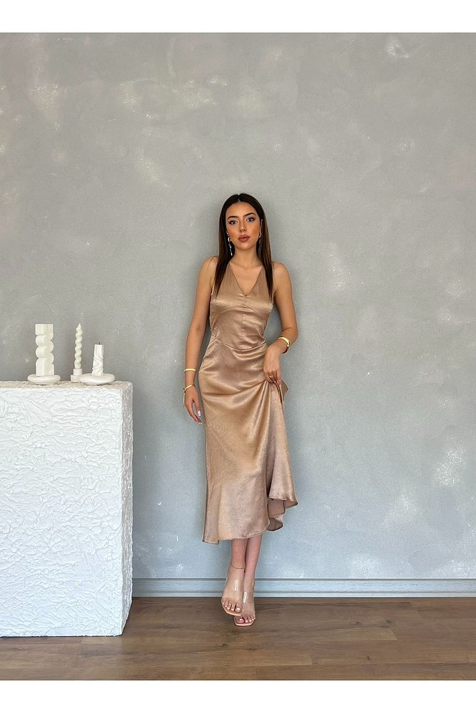 Kıraçlı Saten Midi Özel Gün Mezuniyet Nişan Abiye Kadın Elbise