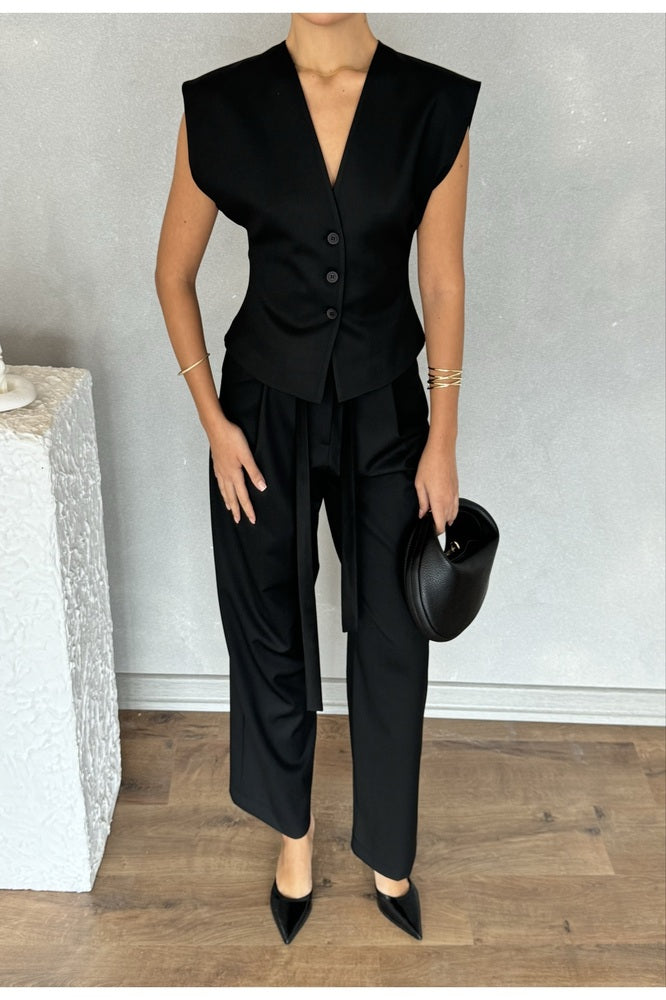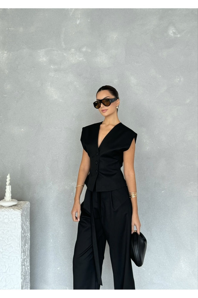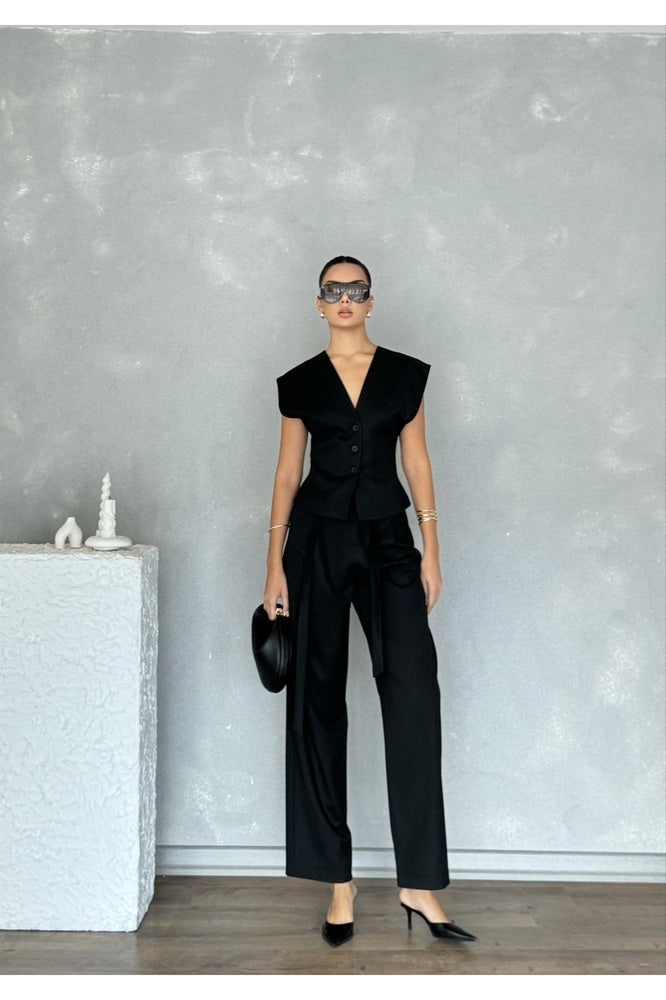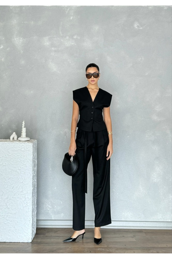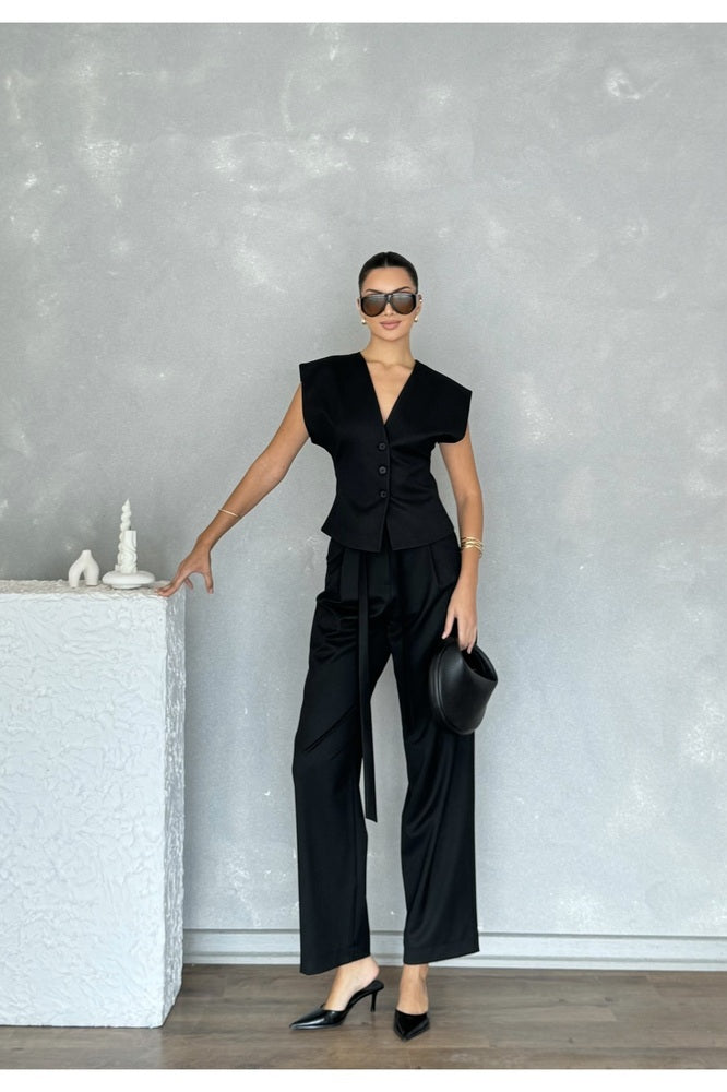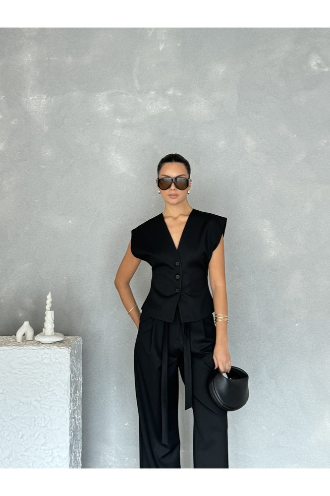 Kolsuz Kuplu Yelek Pantolon Günlük Şık Özel Gün Kadın Takım