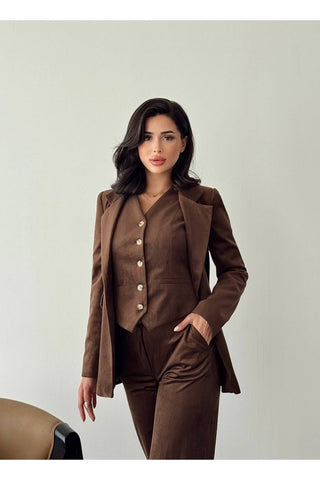 Fitilli Kadife Yelek Pantolon Kadın Günlük Özel Günlük Takım