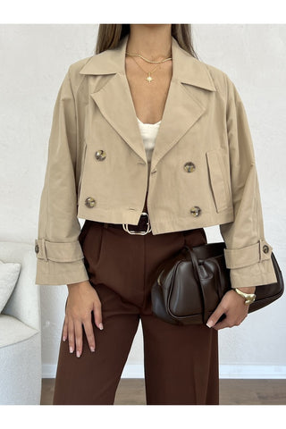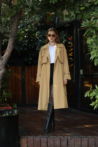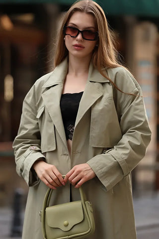 Pelerini Kapaklı Kuşaklı Astarlı Trençkot