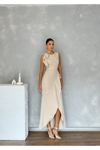 Asimetrik Kesim Eteği Ve Tek Kolu Volanlı Şık Özel Gün Kadın Davet Elbisesi