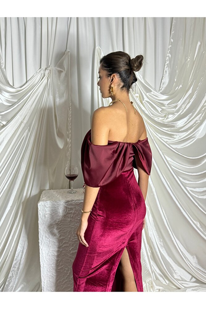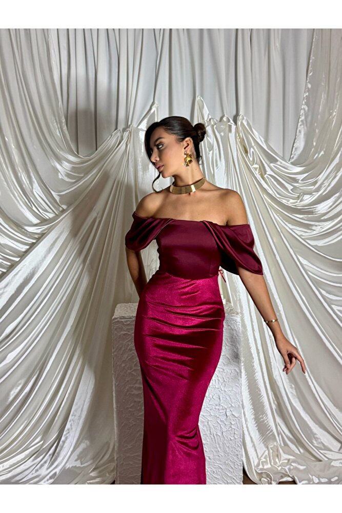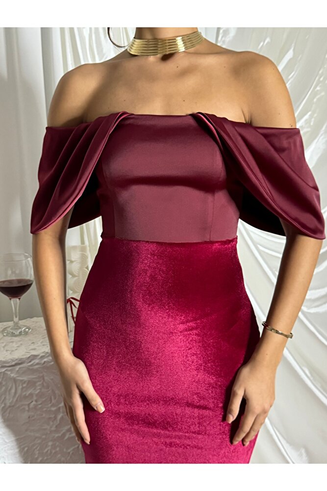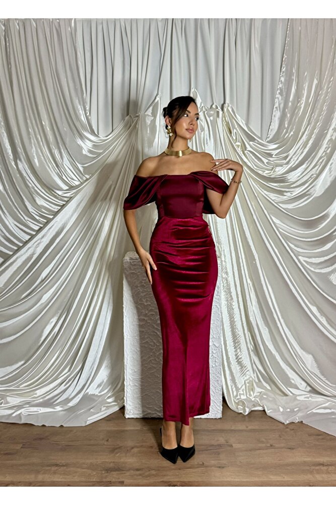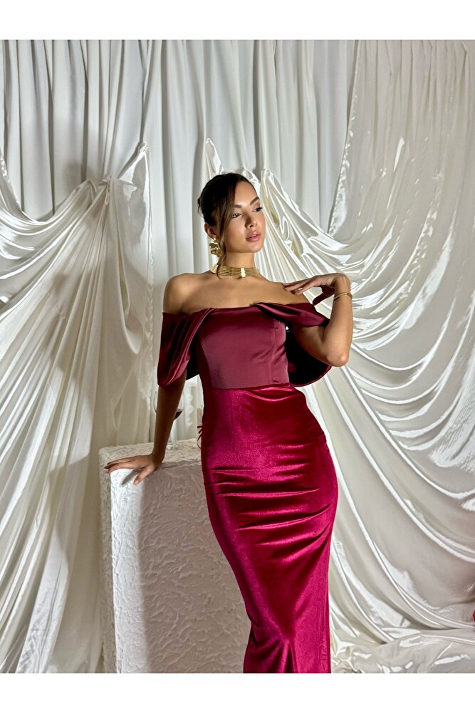 Göğüs Kısmı Saten Eteği Kadife Vücudu Saran Uzun Boy Özel Gün Kadın Nocturna Elbise