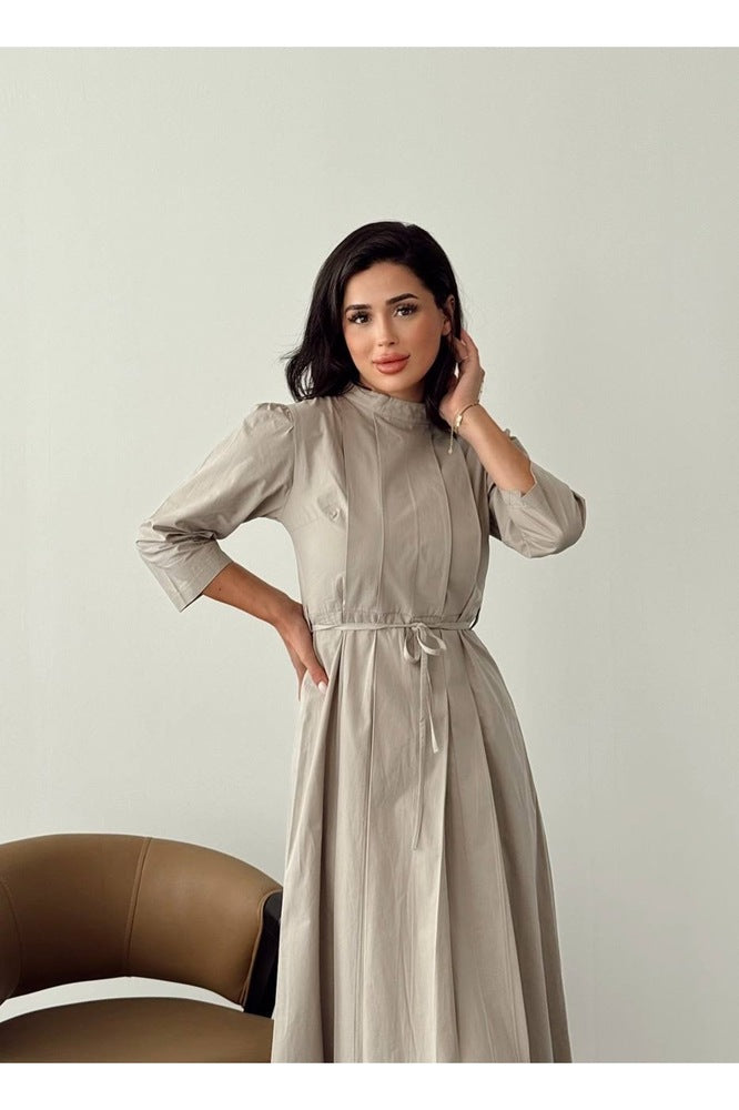 Kadın Pile Detaylı Uzun Boy Kuşaklı Özel Gün Günlük Elbise