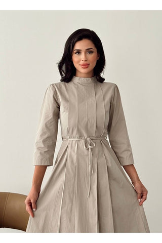 Kadın Pile Detaylı Uzun Boy Kuşaklı Özel Gün Günlük Elbise