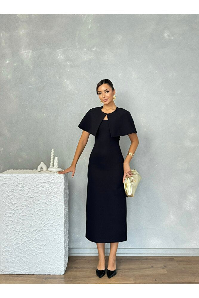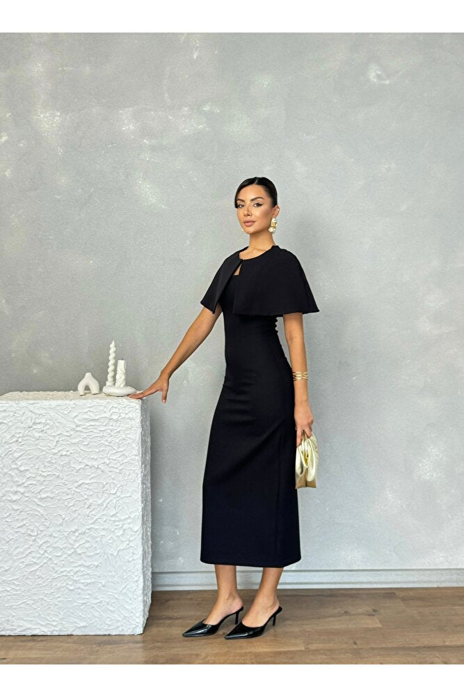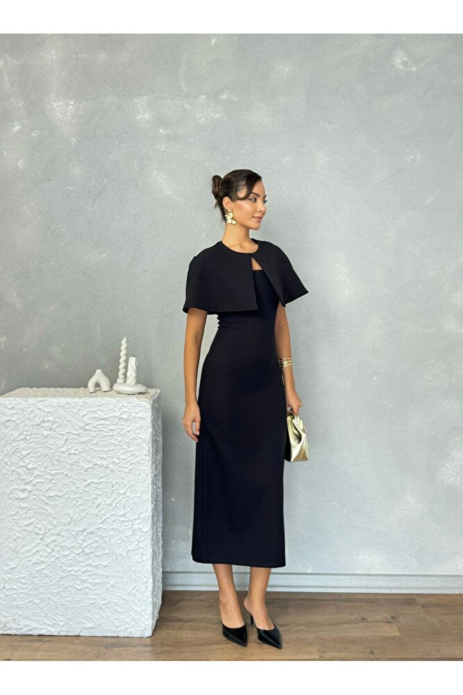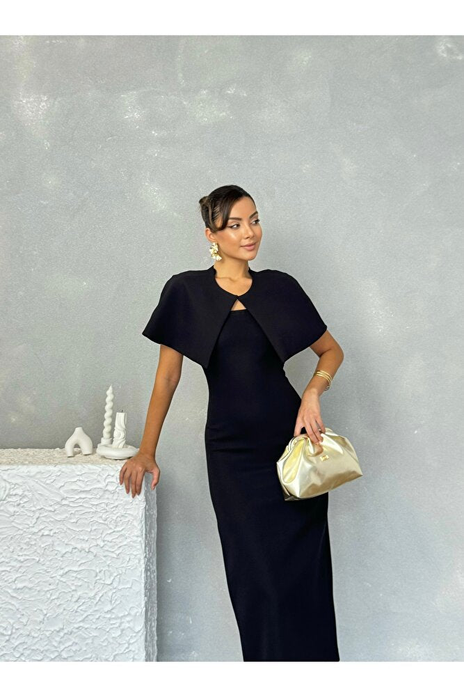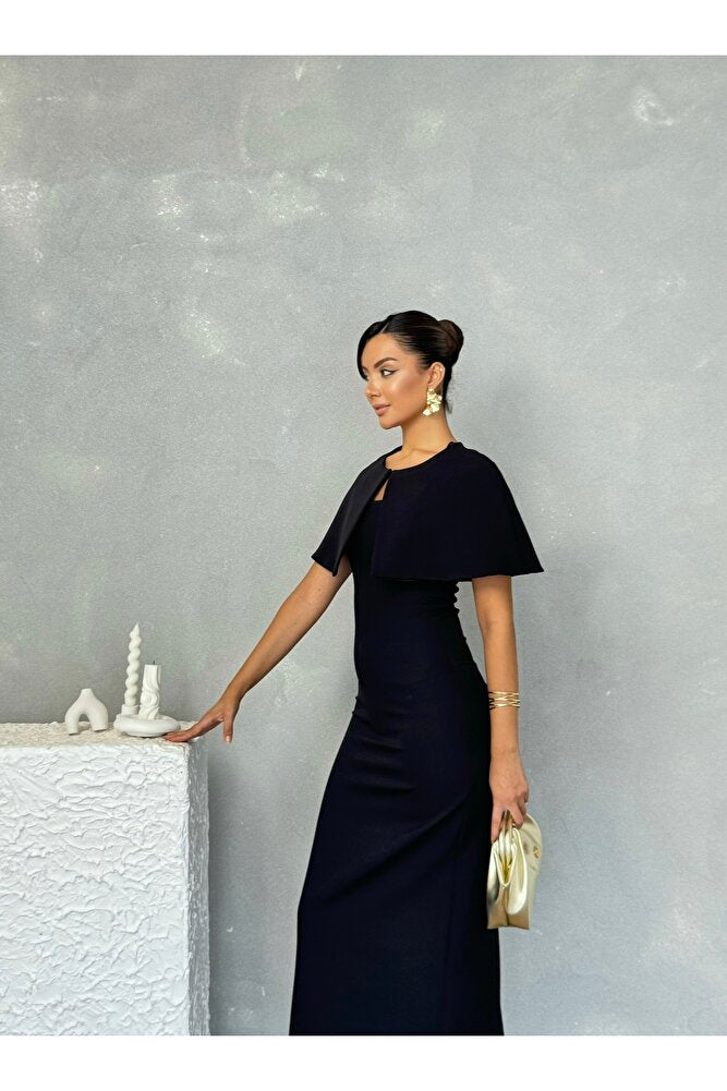 Pelerinli Straplez Uzun Boy Gece Şık Özel Gün Kadın Regina Elbise